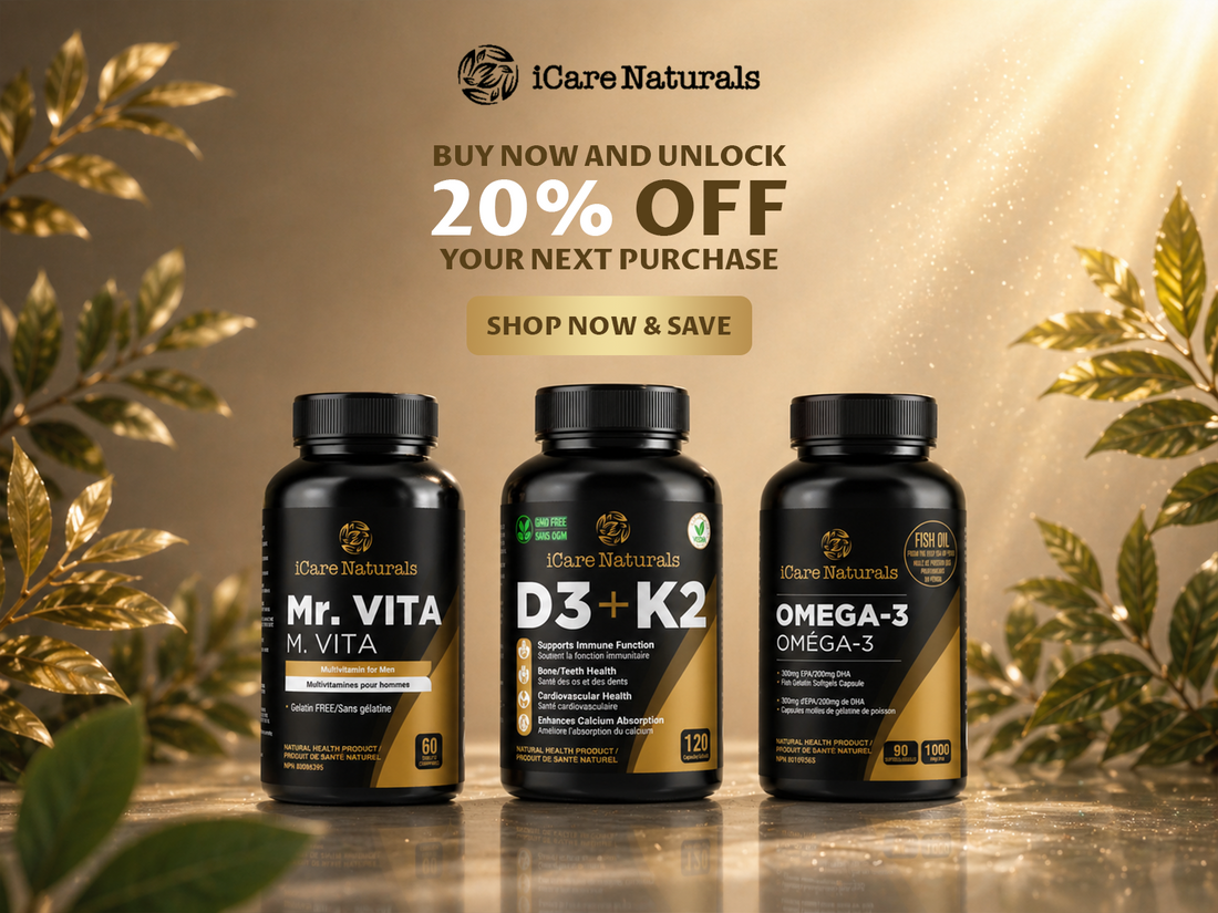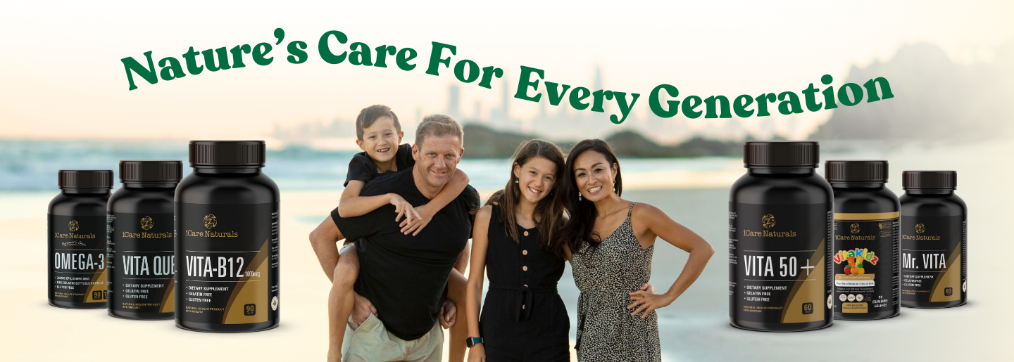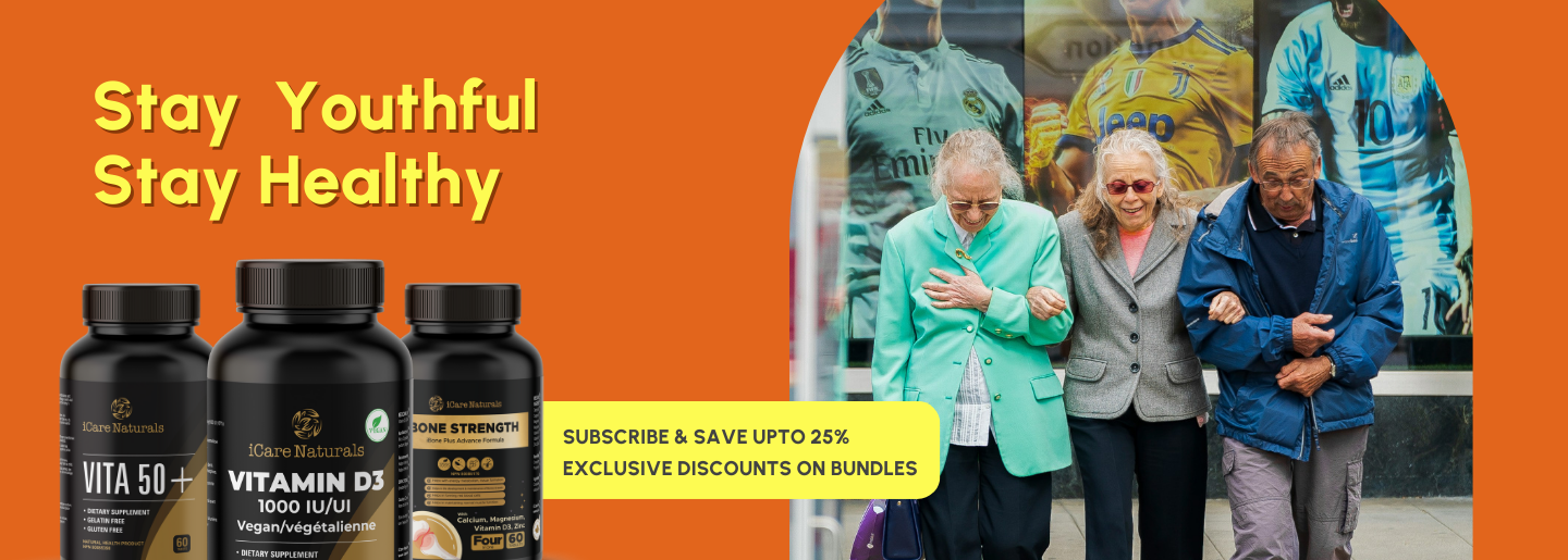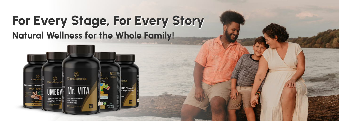 Discover the natural way to vitality at ICare Naturals. Whether you're just starting your wellness journey or seeking to maintain your health at any age, our products are designed to support your active lifestyle and well-being. Join us in celebrating strength, health, and happiness at every stage of life."