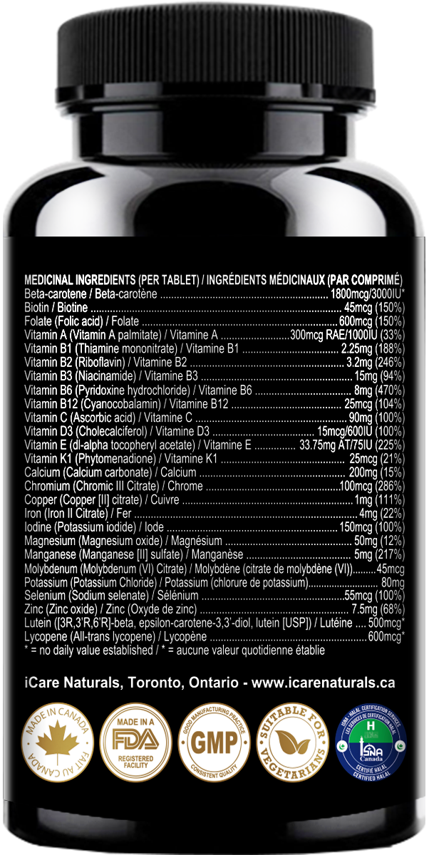 All iCare Naturals Men multivitamins halal products are created with the highest quality ingredients in FDA-registered facilities. iCare Naturals prides itself on its manufacturing process of the Mr. Vita Halal Men Multivitamin, with a strong commitment to international Good Manufacturing Standards (GMP) practices and to providing the highest quality gluten free vitamins Canada.
